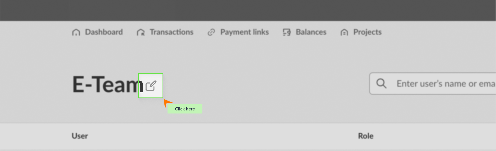 The team name is displayed at the top of the merchant portal page and in invitation letters for new users. To change the team name, go to the Team page and click the edit button next to the current name.